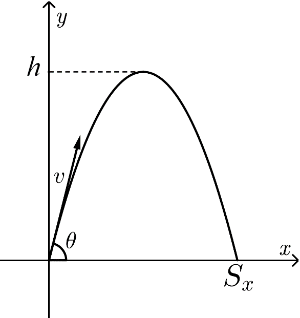 최고점 속력은 $v \cos \theta$이므로 $h, s$로 표현하면 $s = v \cos {\theta} \times  T$ 이므로 $$v \cos \theta = s \sqrt{\frac{g}{8h}} $$